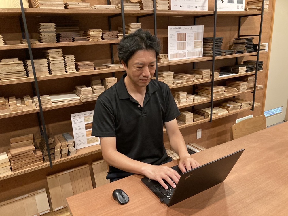 社内で私ひとりだけ、大阪府茨木市にある【共栄木材 大阪・茨木サンプルルーム】の拠点で活動をしています。