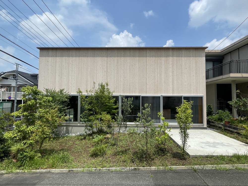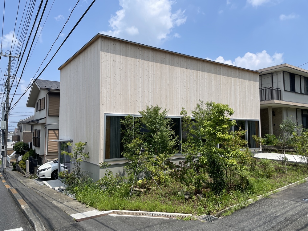 今回はその<暖杉>の表面にスウェーデンからきた水性木材保護剤を塗布することで、結果的に写真のようなやや白味の強い穏やかなシルバーグレーとなります。ただ、施工時には全然違った色ですが、3~6ケ月後にこのような色に変わります。簡単に言うと、木材が空気中の水分を含むことで、表面に塗布されているSioo:X保護剤の中の天然素材のシリカが木材の細胞内で固定し、木材を堅く、長持ちさせるという感じです。