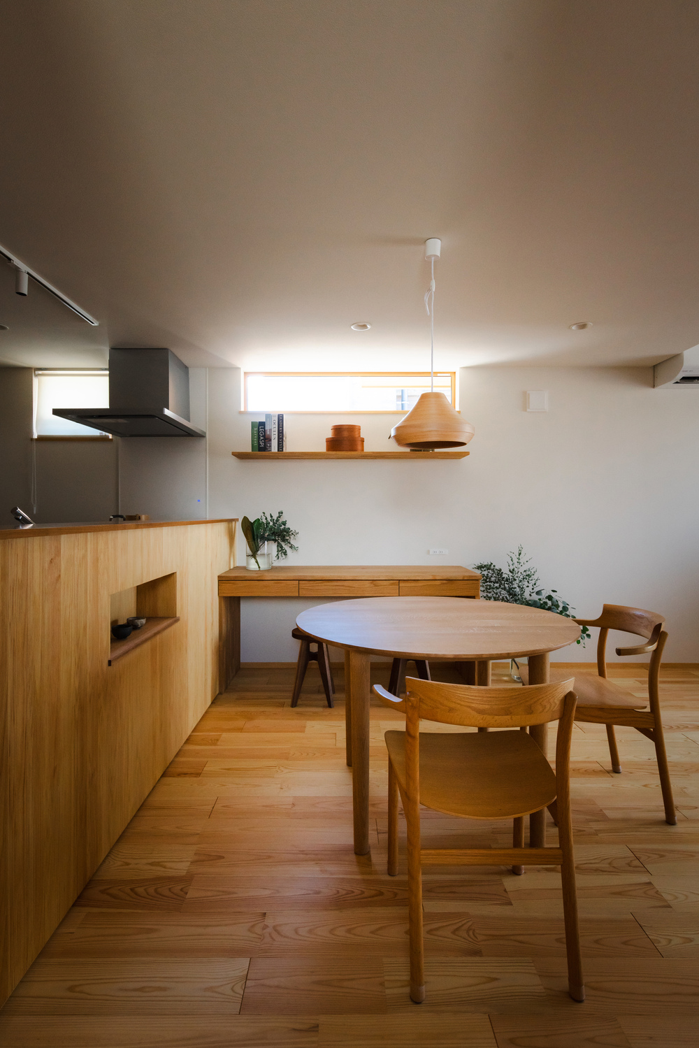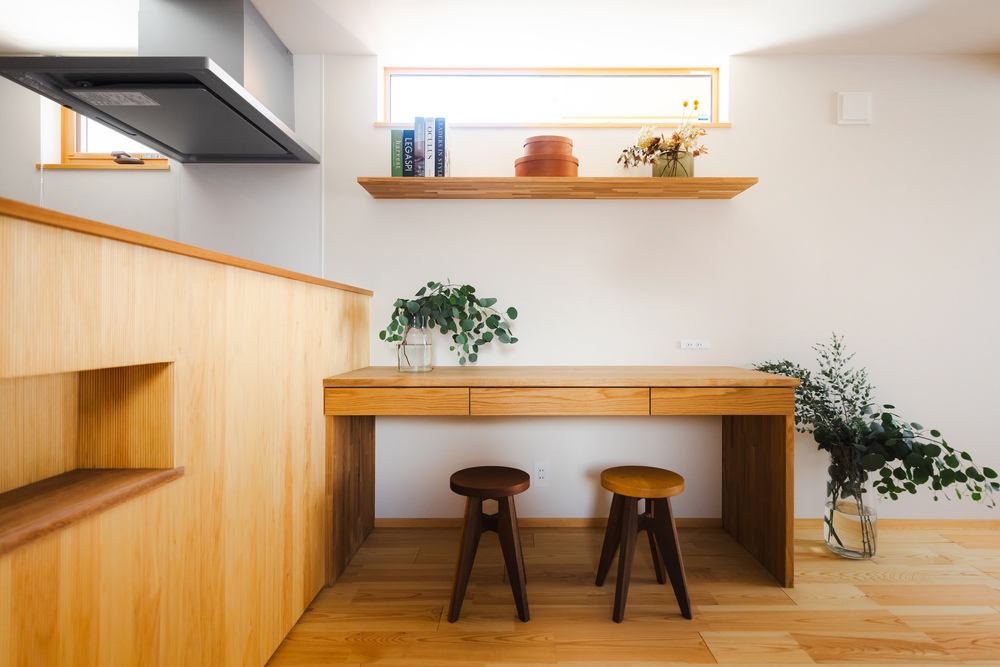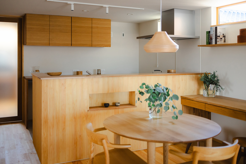 キッチンの腰壁に、桧リブ加工のパネリングをご採用いただきました。