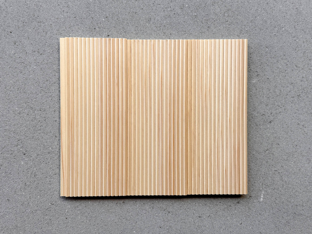 リブ加工は、表面に丸みのある細かな凹凸をつけた加工です。柔らかな陰影と、さざなみのような優しい表情が生まれます。