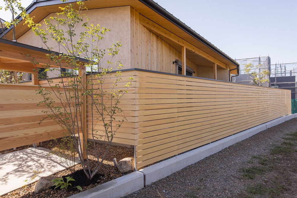 フェンス:ヒノキクリアフェンス 外壁:杉 ボード&バッテン
